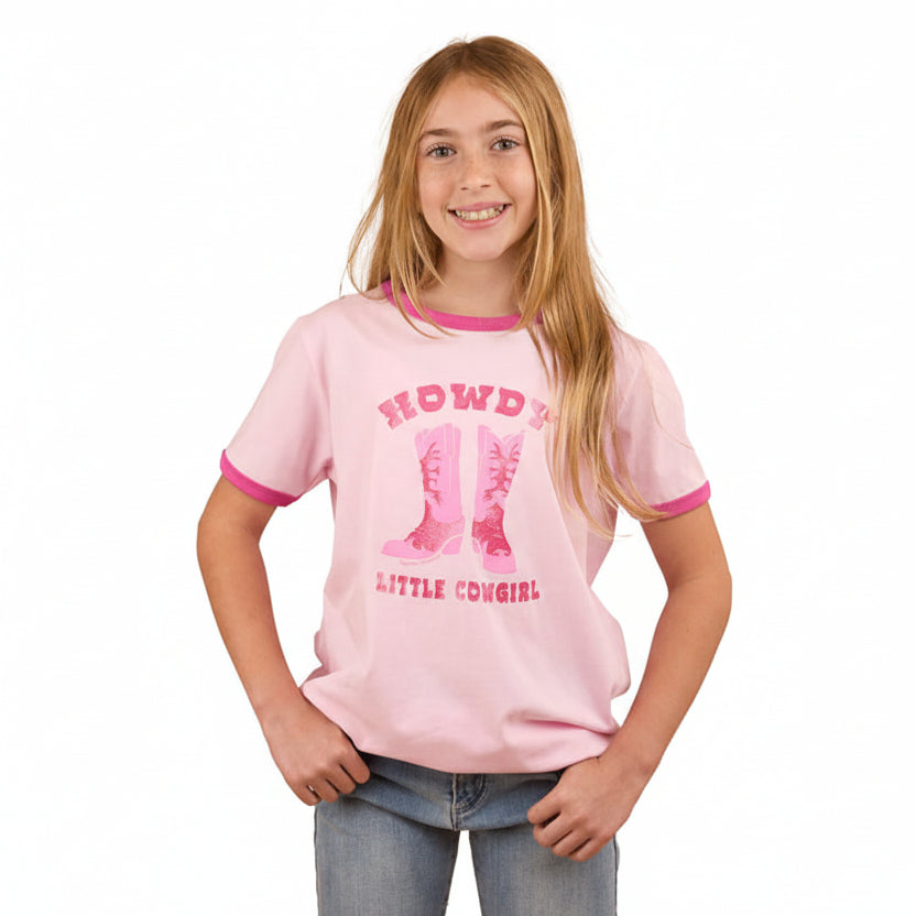 Howdy Cowgirl Kids Ringer T-Shirt - Ballet Pink
